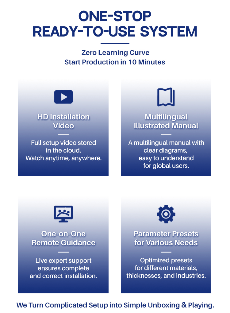 Α: Ο τεχνικός μας έχει εγκαταστήσει το μηχάνημα πριν από την αποστολή. Για την εγκατάσταση ορισμένων μικρών εξαρτημάτων, θα στείλουμε αναλυτικό εκπαιδευτικό βίντεο, εγχειρίδιο χρήστη μαζί με το μηχάνημα. Το 95% των πελατών μπορούν να μάθουν μόνοι τους.